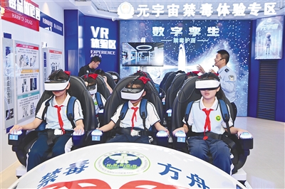 海南省禁毒教育基地,青少年通过AR设备体验毒驾危害。