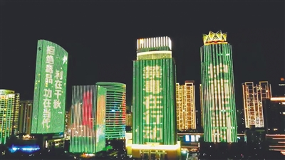 2023年,第36个国际禁毒日到来之际,海口滨海大道“禁毒主题灯光秀”点亮夜空。