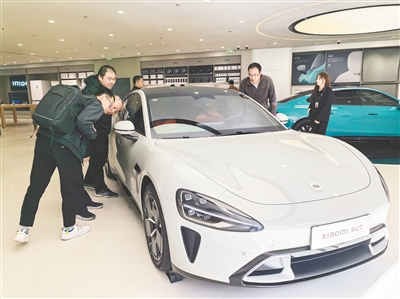 小米集团介绍,小米SU7共推出3个版本,分别为SU7、SU7 Pro和SU7 Max,最低续航里程为700公里。小米SU7、小米SU7 Max版将于4月底开始交付,小米SU7 Pro版将于5月底开始交付。 新华社记者 鞠焕宗 摄