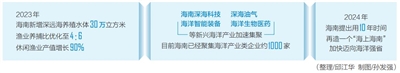 2023年,海南出台17条举措,加快推动渔业“往岸上走,往深海走,往休闲渔业走”,大力发展水产种业、深远海养殖,支持现代化海洋牧场建设,全年新增深远海养殖水体30万立方米,渔业养捕比优化至4:6,休闲渔业产值增长90%。