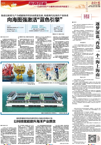 “除了养鱼,新增的养殖综合平台还兼具休闲渔业功能。”林才喜表示,公司将乘着海南自贸港建设的东风,充分利用税收等方面的政策优势,引进更多人才,在做大深远海养殖规模的同时,逐步形成“苗种—养殖—深加工—高值化利用”的全产业链,做到一二三产融合发展。同时积极走出去,打开国际市场,打响国际知名度,做大做强海洋产业,助力“海上粮仓”建设。