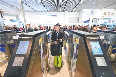 旅客在天津国际邮轮母港快捷办理入境。 新华社发