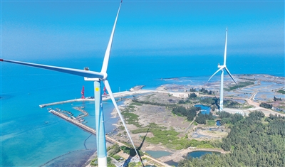 位于临高金牌港开发区的海南(临高)大型海上风电机组检测试验创新中心,机组有序运行。 本报记者 陈元才 摄