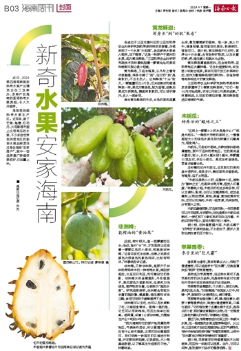 海南是我国热带水果主产区。近年来,除了芒果、莲雾、红毛丹、火龙果等市面上比较常见的水果,不少来自世界低纬度地区的新奇水果品种漂洋过海在海南“安家落户”,其中一些品种推广种植效果较好,已批量上市。