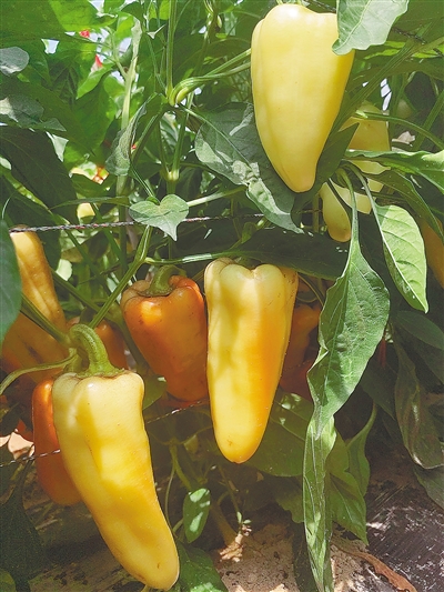 “它的外表鲜亮,刚开始生长是乳白色,成熟后则变为乳黄色,非常漂亮。”马文全介绍,这种辣椒口感脆甜、水分较多,可以直接生食。