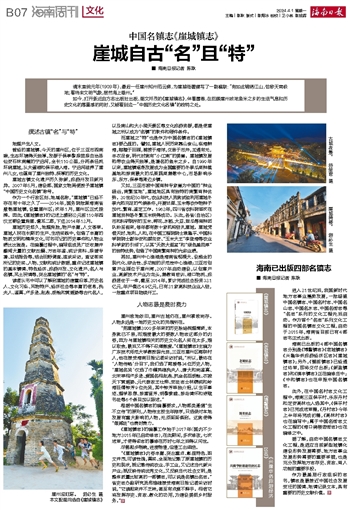 ■ 海南日报记者 陈耿进入21世纪后,我国新时代地方志事业蓬勃发展,一批涵盖中国名镇志、中国名村志、中国名山志、中国名水志、中国名街志等“名志”系列的文化工程先后启动。作为首个“名志”系列文化工程的中国名镇志文化工程,启动于2015年,海南省目前已有4部志书正式出版。