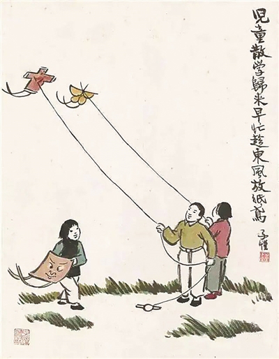 《忙趁东风放纸鸢》(国画) 丰子恺 作