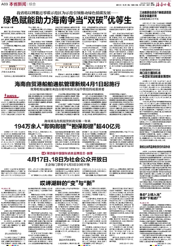 (本报海口4月1日讯)
