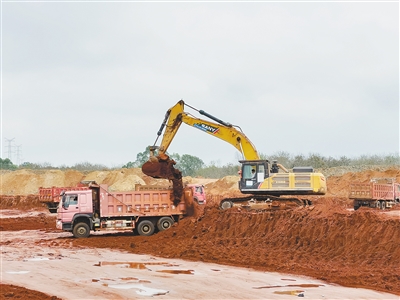 洋浦疏港高速公路1标段项目施工现场。本报记者 林书喜 通讯员 邱银 摄