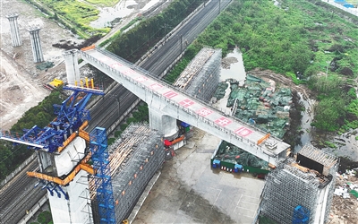 沪渝蓉高铁武宜段跨汉丹铁路特大桥成功转体
