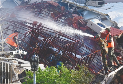 爆炸后升起的浓烟。 (本栏图片均由新华社发)
