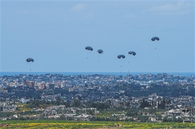 飞机空投人道主义援助物资进入加沙地带。新华社发