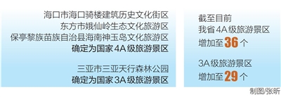 本报海口4月7日讯(记者刘晓惠 通讯员李艺娜)4月7日,海南省旅游资源规划开发质量评定委员会发布公告,我省新增3家4A级旅游景区和1家3A级旅游景区。根据海南省旅游资源规划开发质量评定委员会按程序组织综合评定,海口市海口骑楼建筑历史文化街区、东方市娥仙岭生态文化旅游区、保亭黎族苗族自治县海南神玉岛文化旅游区达到国家4A级旅游景区标准要求,确定为国家4A级旅游景区。三亚市三亚天行森林公园达到国家3A级旅游景区标准要求,确定为国家3A级旅游景区。截至目前,我省4A级旅游景区增加至36个,3A级旅游景区增加至29个。