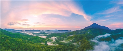 近日,一场春雨过后,海南热带雨林国家公园五指山片区山间云雾缭绕,映照着傍晚的满天霞光,美景令人陶醉。 本报记者 李天平 摄