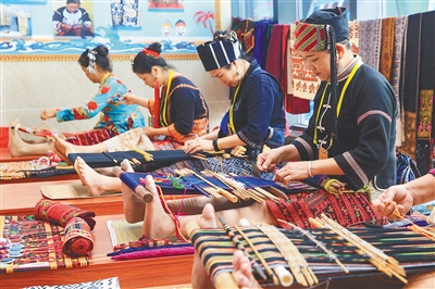 2023年海南黎族苗族传统节日“三月三”主会场,展演传统黎锦技艺。王将就 摄