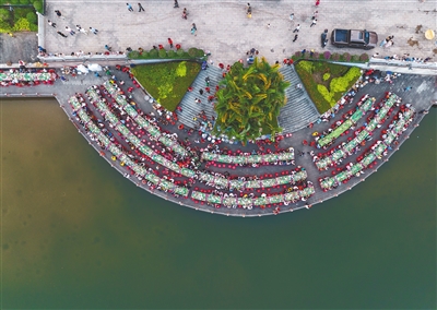 2023年4月22日,在白沙黎族自治县牙叉镇南叉河畔,当地百姓和八方宾朋共品长桌宴。方山 摄
