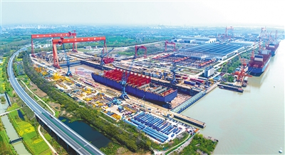 图为4月9日拍摄的扬州中远海运重工有限公司生产厂区。 (本栏图片均由新华社发)