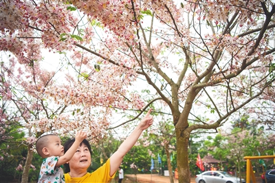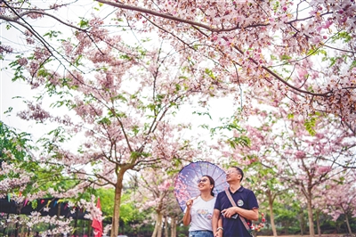 据介绍,大顺农场种植的樱花为泰国花种。因其春季开花大且美丽而得名,花开时满树繁花,整棵树都挂满了粉红的花朵,在东南亚又被称为泰国樱花。花期可维持45天左右,适宜美化庭院及城市绿化观赏。特约记者 蒙钟德 摄