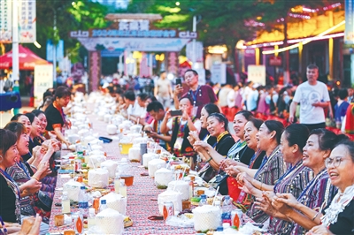 夜幕降临,庆祝活动在点燃篝火的那一刻掀起热潮。“欢迎大家都来我的家乡做客,我们会奉上最香甜的山兰酒,迎接贵客。”在谢运科的声声祝福下,庆祝活动接近尾声。仁兴镇有关负责人介绍,该镇将引入直播带货,增加直播频率,让产自苗村深处的优质农副产品走向省内外。