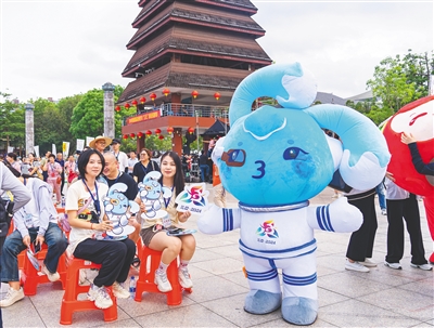 “吉贝”不仅为大家带去欢乐,还向游人朋友发出来自三亚的邀请。“今年11月,运动会将在三亚举办,我们在三亚等你们。”在会场,“吉贝”广交伙伴,介绍运动会相关信息,回答大家的提问,并向他们发出邀约。