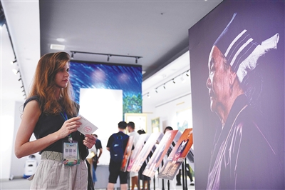 外籍观众前来参观“寻迹雨林”摄影展。 本报记者 王程龙 摄