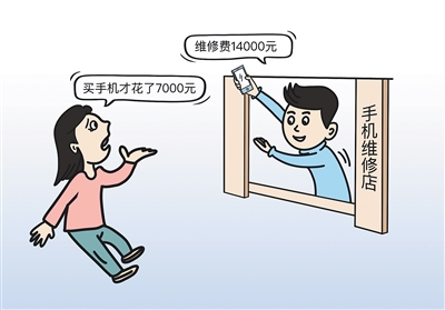 “买手机才花7000多元,维修却要14000多元。”近日,湖北武汉的卢女士将手机送至一家维修店维修,不料维修价格竟是手机售价的两倍。该女士付不起高额的维修费,只好把手机抵押,陷入“手机没了倒赔钱”的处境。长期以来,由于手机维修专业性强,且价格不透明,一些不法分子趁机设下种种圈套,小“病”大修、以次充好、漫天要价、泄露消费者信息等问题频出,甚至还出现维修费比手机原价还高的情况,让消费者有苦难言。整治手机“维修刺客”,推动维修行业透明化和标准化是有效途径。唯有健全和规范行业标准,让手机维修流程和价格都公开、透明,才能真正维护市场秩序,让消费者明明白白消费。