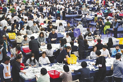 四月十日晚,工作人员在韩国首尔进行计票工作。 新华社发