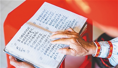王取荣的笔记本上记满了他收集到的黎歌歌词。 海报集团全媒体中心记者 李昊 摄