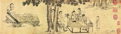 北宋李公麟的《西园雅集图》(局部。原画已流失海外,后世多摹本),描绘了苏轼、苏辙、米芾、王诜等名流的生活画面。 资料图