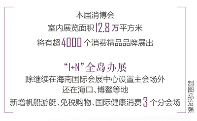 来自本届消博会组委会的数据显示:今年,本届消博会室内展览面积12.8万平方米,有超4000个消费精品品牌展出,规模再创历史新高。