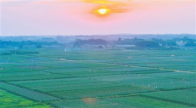 俯瞰定安潭黎龙州洋圣女果基地。通讯员 程守满 摄