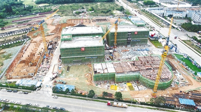 俯瞰位于定安塔岭工业园的标准厂房建设项目。(项目方供图)