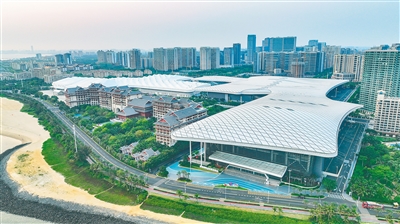 近日,在第四届中国国际消费品博览会主会场海南国际会展中心,布展工作有序推进。 袁才 摄