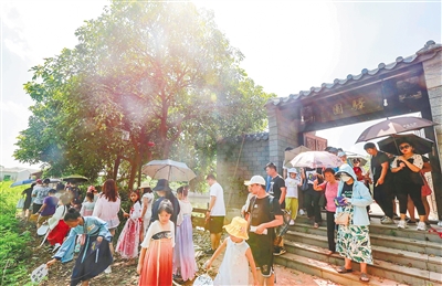 澄迈县桥头镇沙土村,游客合影留念。本版图片均由袁才 摄