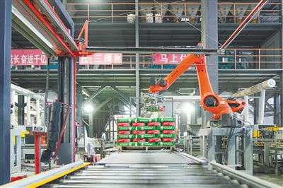 位于澄迈的海南恒翔佳节能科技有限公司厂房内,机械臂转动,产品不断流出生产线。武昊 摄