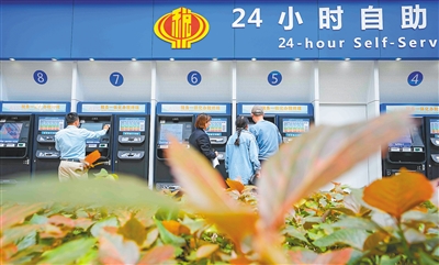 位于澄迈县老城镇的海南生态软件园,工作人员协助客户办税。袁才 摄