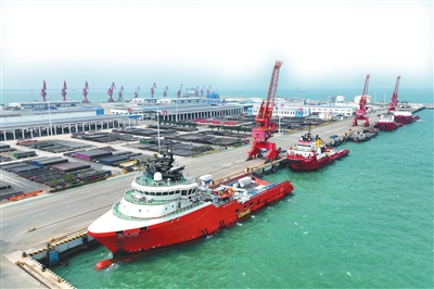 位于澄迈的海南中海石油码头有限公司码头,作业货船进行补给作业。武昊 摄