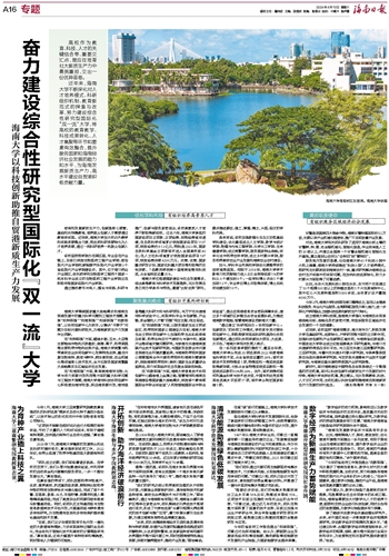 高校作为教育、科技、人才的关键结合带、重要交汇点,理应在培育壮大新质生产力中勇挑重担,交出一份优异答卷。近年来,海南大学不断深化对人才培养模式、科研组织机制、教育新范式的探索与改革,努力建设综合性研究型国际化“双一流”大学,将高校的教育教学、科技成果转化、人才集聚等环节和要素有效整合,提升服务国家和海南经济社会发展的能力和水平,为海南发展新质生产力,高水平建设自贸港积极贡献力量。