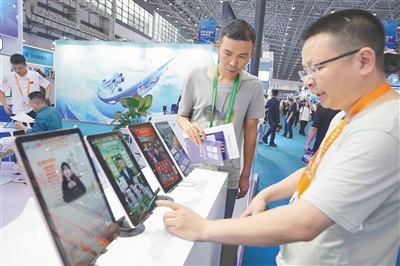 4月13日,第四届中国国际消费品博览会1号馆数字和服务消费展区,数字人直播倍受观展者关注。