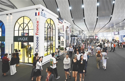 4月14日,在第四届消博会上,法国馆举行开馆仪式欢迎来自各地的客商和嘉宾。作为法式生活艺术的真实展示,在法国馆广大参观者可以体验到如同巴黎繁华购物街道的纯正“法式”风情。 本报记者 王凯 摄