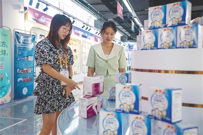 4月13日,消博会国际健康消费分展区,参展商为宾客介绍产品。本报记者 袁琛 摄
