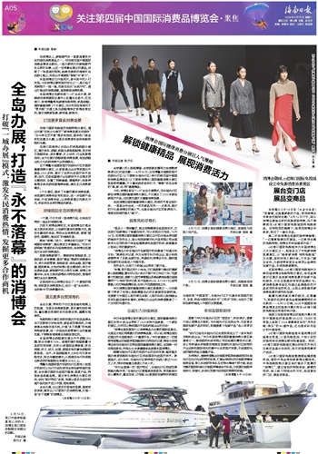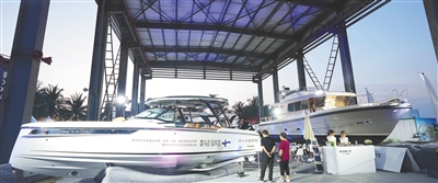 4月14日,海口市国家帆船基地公共码头,消博会海口国际游艇展会场展出的游艇。 本报记者 陈元才 摄