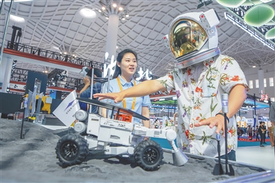 四月十四日,在消博会浙江馆,一名参展者在体验卫星影像服务产品。本报记者 袁琛 摄