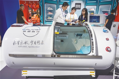 四月十四日,在消博会上海馆,家用高压氧舱受关注。本报记者 袁琛 摄