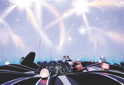 体验者在人工智能沉浸式体验项目“AI之梦”中进行互动体验。新华社发