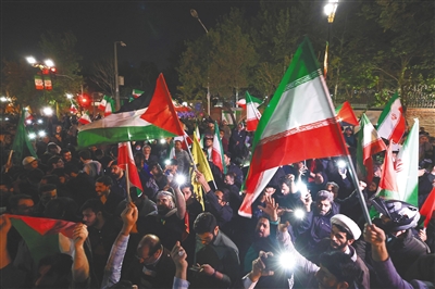 4月14日,伊朗民众在首都德黑兰集会,支持对以色列的报复性打击。新华社发