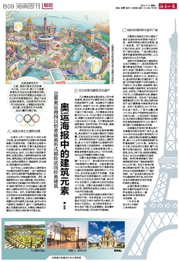 ■ 姜霖法国是建筑艺术之都,是现代奥林匹克的复兴之地。2024年,第三十三届夏季奥林匹克运动会重回塞纳河畔。近日官方发布的巴黎奥运会海报以天马行空的创意插画形式,描绘了诸多法国经典建筑。这些建筑杰作也将作为活动场地,上演精彩纷呈的竞技比赛,尽显建筑艺术与体育运动力量的交融之美。