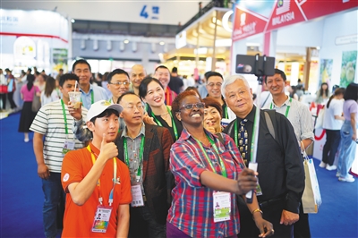 尼泊尔参观团在消博会现场合影留念。本报记者 张茂 摄