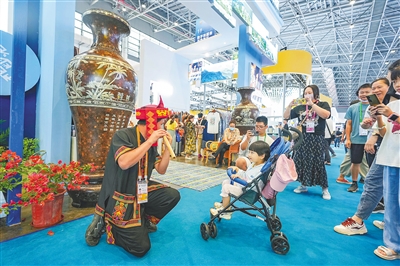在消博会上,黎族音乐表演展示吸引不少观众驻足。本报记者 陈元才 摄