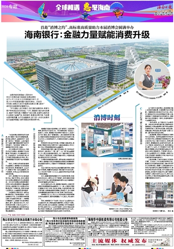 为逛展观众带来耳目一新的金融消费体验、为参展商提供一站式金融服务平台、为志愿服务群体推出暖心的金融支持权益……海南银行精准施力,全程参与本届消博会展前、展中、展后各阶段工作,充分发挥优势资源,为更多企业和个人客户提供便捷畅通、优质高效的金融服务,高标准高质量助力本届消博会圆满举办。